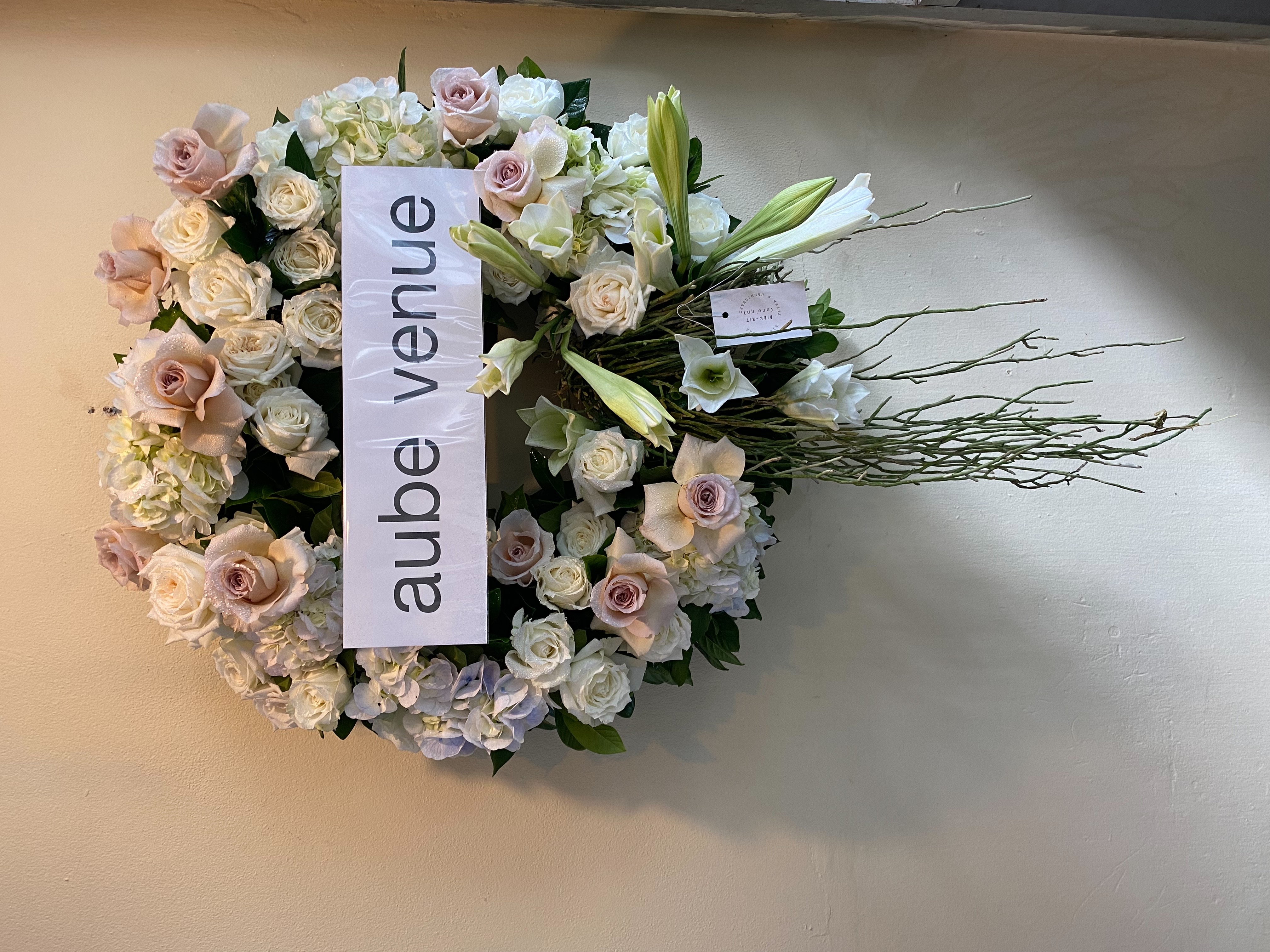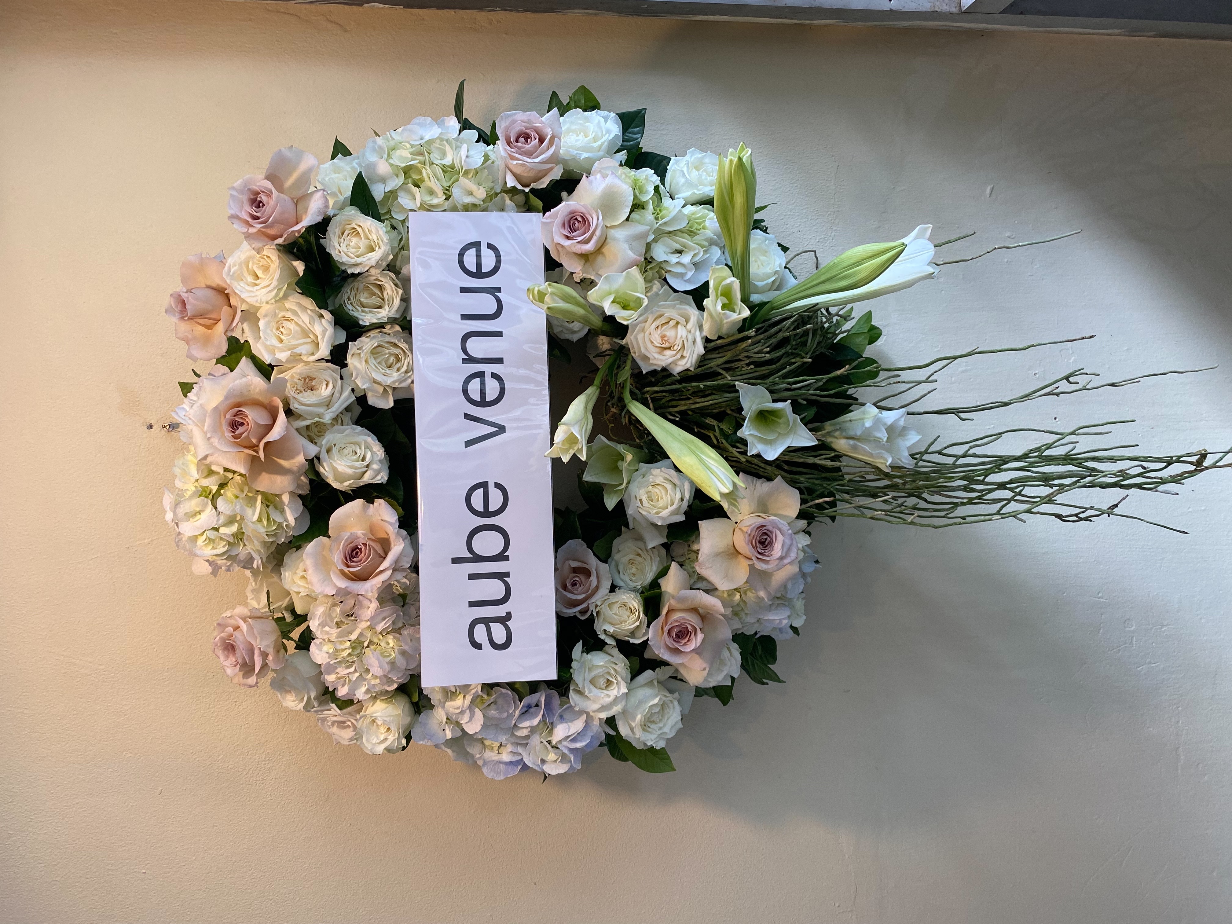 Minimal wreath. Donut wreath. (พวงหรีด)วงกลม ขนาด 65 ซม. โทนสีขาว เขียว ชมพูอ่อร ราคา 1590.-